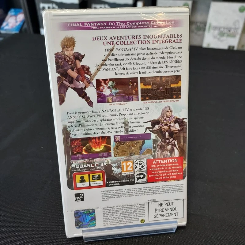 Final Fantasy IV Complete Collection est un jeu de rĂ´le sur PSP. Le jeu reprend l’opus original sorti sur Super Nintendo et sa suite Ă©pisodique sortie sur WiiWare. Il bĂ©nĂ©ficie de graphismes retravaillĂ©s et d’un scĂ©nario supplĂ©mentaire liant les deux opus.